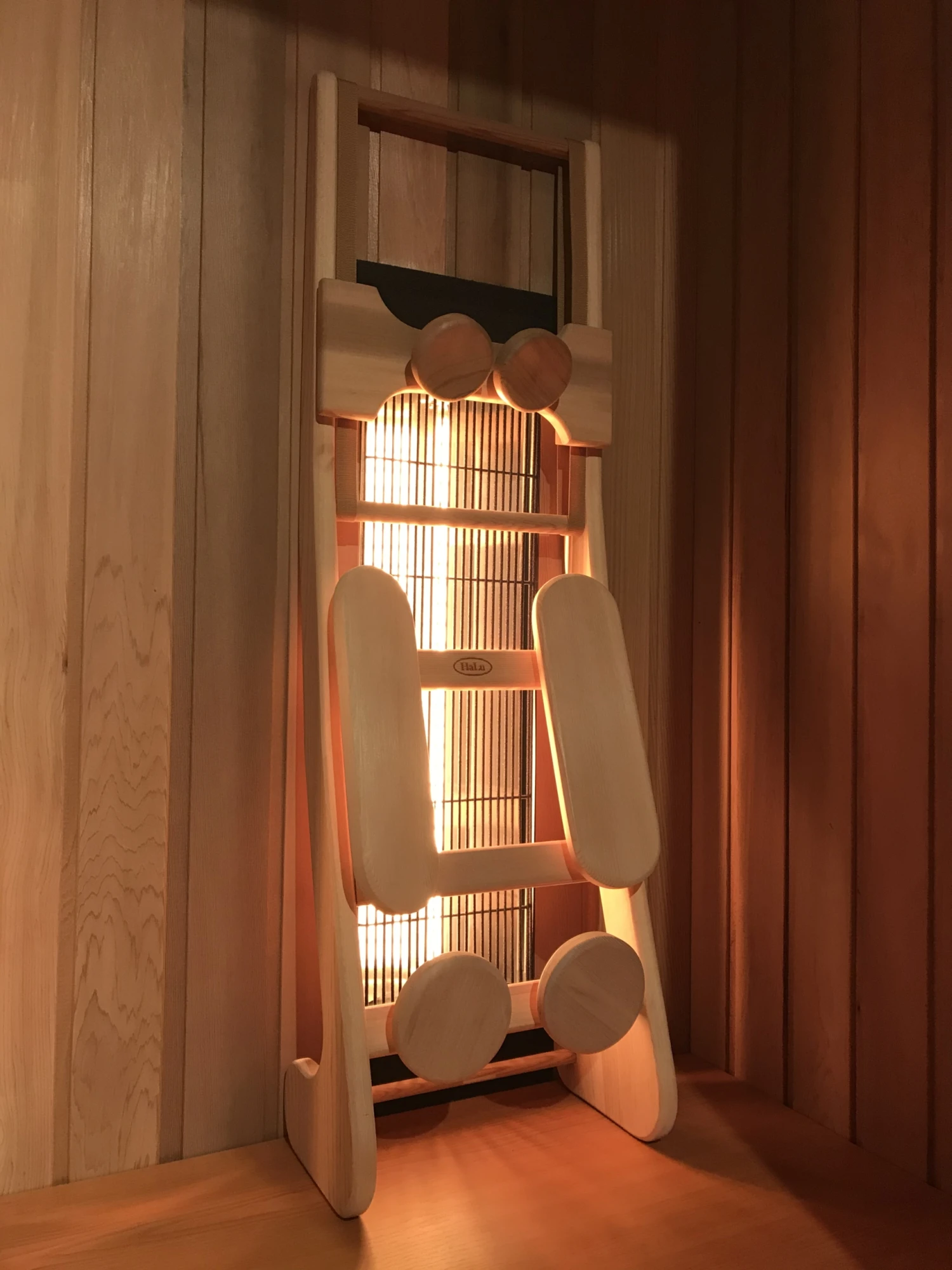 Halu heeft ook een rugleuning met infrarood ontwikkeld voor gebruik in de sauna. Deze rugleuning is ook op andere locaties te gebruiken. Het betreft een zelfstandige rugleuning die je tegen elke muur kunt plaatsen. Het heeft een stekker voor 220V. Steek de stekker in het stopcontact, schakel in en geniet van infrarood terwijl je een comfortabele, ergonomische houding aanneemt. Als je een afgewerkte sauna hebt, kun je deze eenvoudig ombouwen tot een infraroodcabine met deze rugleuning. De basis van de rugleuning is om de rug en het hoofd te ondersteunen zonder drukpunten te veroorzaken. Deze rugleuning is ook ergonomisch ontworpen en past zich aan aan ieders rug, waardoor een ultieme ontspannen lichaamshouding wordt gegarandeerd.