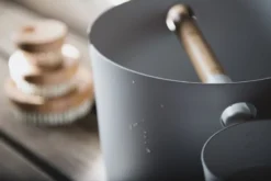 KOLO Kiulu+Kauha is een onafscheidelijk paar en daarom zijn ze als één geheel verpakt. De sauna lepel fungeert als handvat van de emmer en zonder de bok zou de pollepel geen plek hebben om te rusten. Ze verbeteren uw sauna-ervaring niet radicaal, gloeien niet op in het donker en hebben geen speciale geur voor een onvergetelijke ervaring. Maar dit garanderen we u: onze emmer zal niet lekken en onze pollepel zal nooit breken.