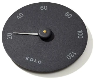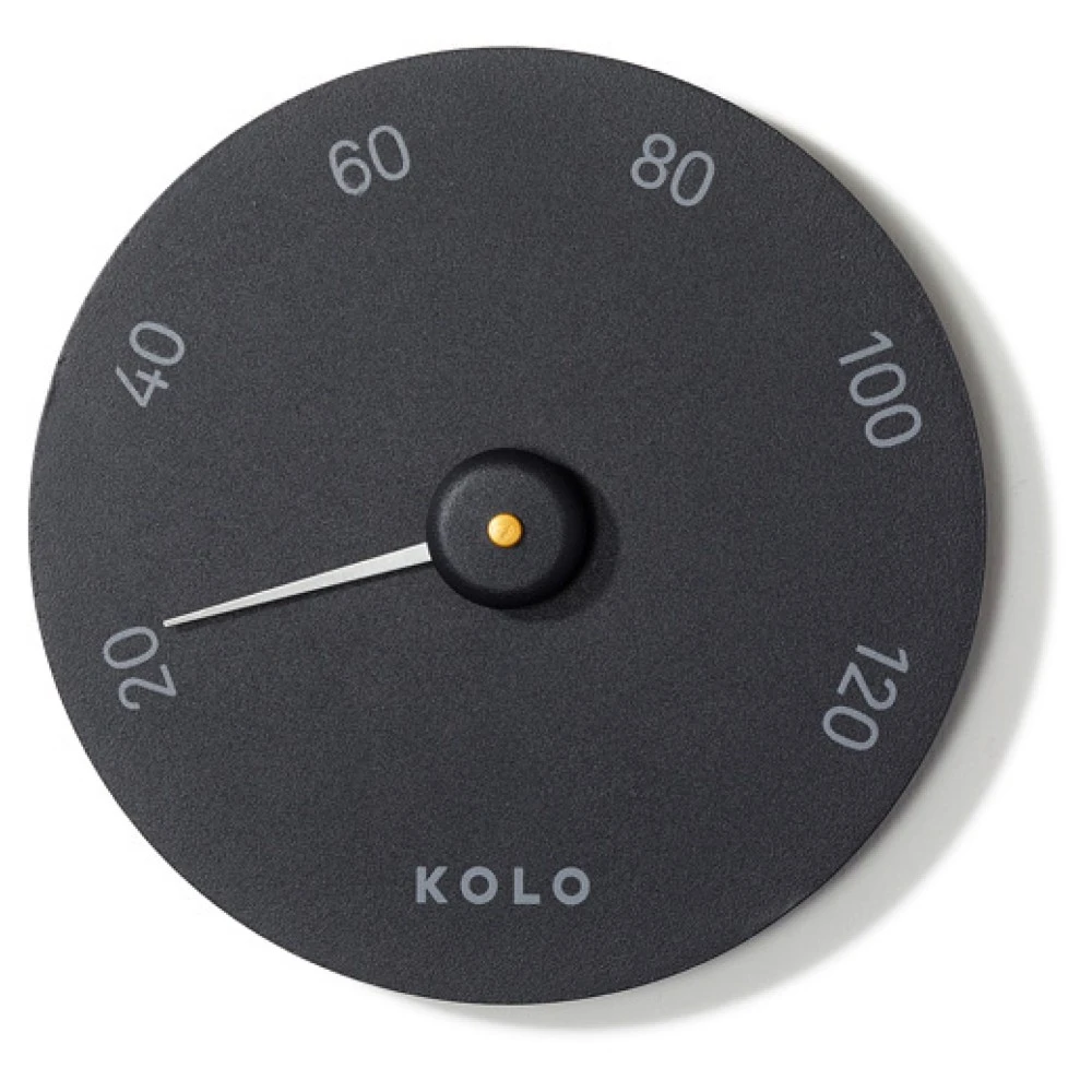 Stijlvolle KOLO thermometer is gemaakt van aluminium met een zwarte poedercoating. Past perfect bij andere KOLO saunaproducten.