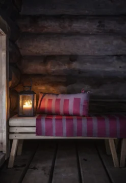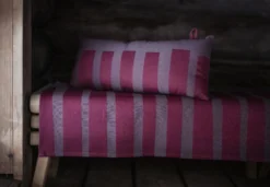Voor ondersteuning van hoofd en nek op de saunabanken. Het hoogwaardige jacquardgeweven saunakussen behoudt was na was zijn vorm en mooie patroon. Zacht, licht katoen is een perfect materiaal voor de sauna! Het voelt koel aan tegen de huid, neemt goed vocht op en droogt snel. Gevuld met sneldrogende watten. Ontwerp door Anna Säteri.